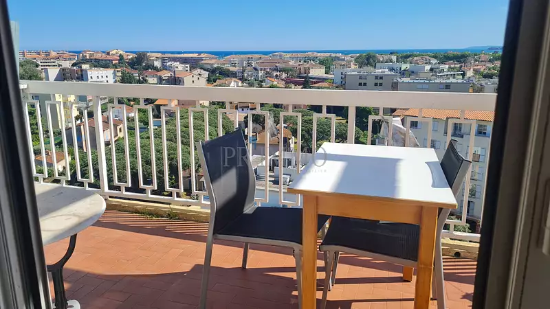 EXCLUSIVITE Fréjus-plage dans une résidence sécurisée, au 8 ème et dernier étage avec ascenseur, découvrez cet appartement type 2 pièces d'environ 42m2 offrant une vue mer dégagée. Situé à seulement 10 min à pied de la plage et de toutes les commodités, il comprend entrée, séjour lumineux ouvert sur une belle terrasse vue mer de 10m2, chambre avec balcon avec double isolation phonique et climatisation, salle d'eau avec wc, cuisine. Des travaux de rénovation sont à prévoir laissant libre cours à vos envies. Le bien est complété par deux caves et une place de parking privative. Possibilité garage en sus. A visiter rapidement
