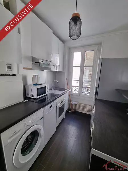 Nous vous proposons à la vente occupée en bail meublé dans un immeuble ancien au 1er étage sans ascenseur et à 400 m du métro Marcadet-Poissonniers . Un appartement traversant avec vue sur rue et cour comprenant une entrée, une salle de bains avec toilettes, (baignoire et lavabo), une cuisine ouverte équipée et aménagée ( lave linge et lave vaisselles, réfrigérateur), un séjour, une chambre et un salon donnant sur la cour.