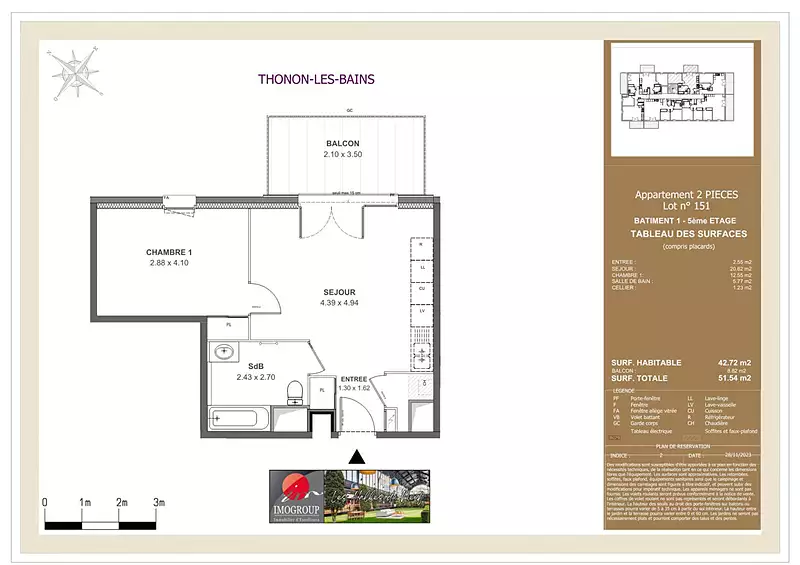 | 42,72 m² - 2 pièces - 1 chambre | Étage 5/6 avec ascenseur |