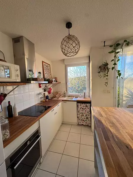 Chauffage individuel électrique, clim réversible dans le séjour, cuisine équipée.