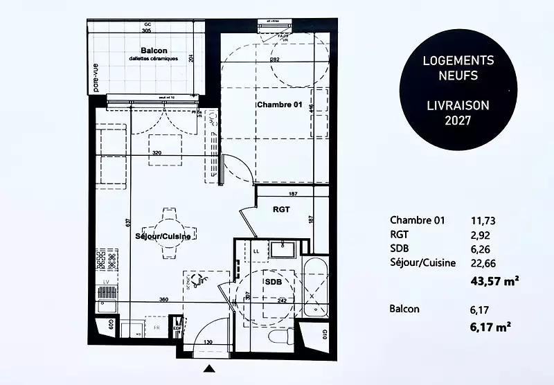 | Prix de vente : 174 000 € | Prix au m² : 4 047 € / m² |