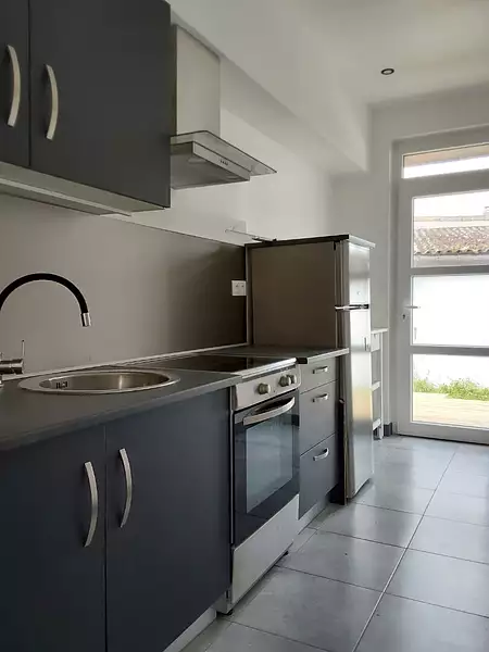 50350 Donville les bains, Square Habitat vous propose cet appartement type T2 entièrement rénové, en rez de jardin (1er étage côté rue), avec terrasse. Il comprend une entrée/cuisine aménagée, un dégagement desservant séjour, chambre, salle de bains et Wc indépendant. Clair et agréable, proche toutes commodités. Le charme de l'ancien rénové.