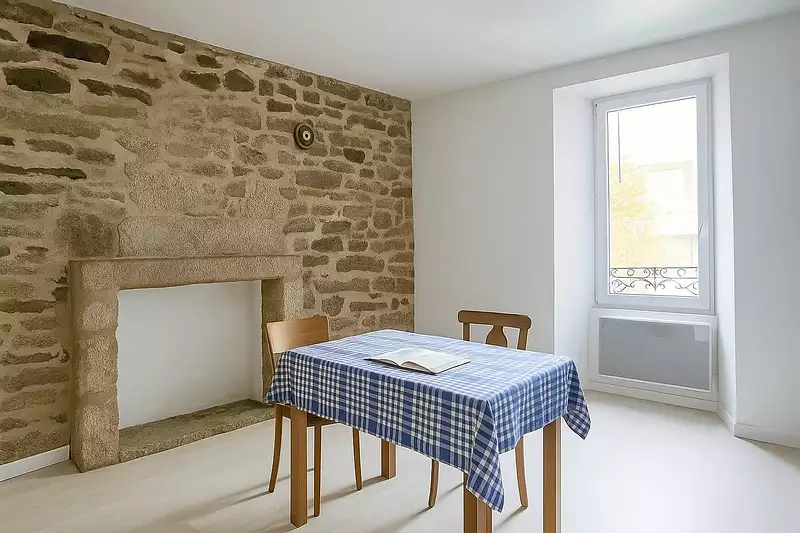 LE ROUZIC IMMOBILIER vous présente cet appartement de type T2 situé au 1er étage comprenant : entrée, séjour - salon, cuisine équipée ouverte, chambre en alcove, SDE WC.
