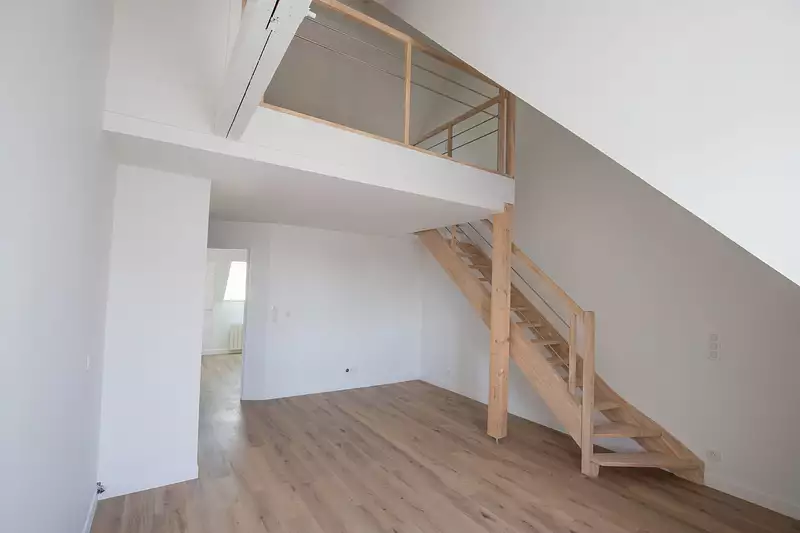 Il se situe au 2ème étage d'un petit immeuble. Il dispose d'une chambre, d'une belle pièce à vivre et d'une salle d'eau. La mezzanine est un atout supplémentaire pour y créer une pièce.