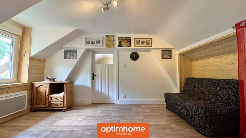 Dès l'entrée, on découvre un espace d'accueil bien pensé, permettant de ranger manteaux, chaussures ou sacs à dos — un vrai plus dans un petit cocon. La pièce de vie est chaleureuse, baignée de lumière naturelle, et offre une jolie vue dégagée sur les montagnes environnantes. Une atmosphère cosy, propice à la détente.