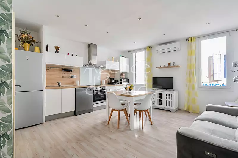 L'Agence du Sud a le plaisir de vous proposer en exclusivité ce bien traversant, idéalement situé au calme, en plein coeur du centre-ville de La Ciotat. Situé au premier étage, cet appartement lumineux offre un bel espace salon/séjour baigné de lumière grâce à ses doubles fenêtres. La cuisine, entièrement équipée, est dotée d'une climatisation réversible. Côté nuit, vous trouverez une belle chambre avec placards, ainsi qu'une chambrette attenante disposant d'une fenêtre, idéale pour un bureau ou une chambre d'enfant. Les deux pièces donnent sur une charmante cour intérieure, au calme absolu. Un bien clé en main : climatisation réversible, double vitrage, traversant. Pour plus d'informations ou organiser une visite, contactez-nous au 04 42 70 20 20.