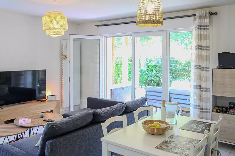 Exclusivité. A proximité immédiate du centre de Labenne, de ses commerces et transports, bel appartement 2 pièces de 43.43 m² Carrez au rez-de-chaussée avec terrasse et jardin privatif. Entrée avec rangements, Salon / Salle à manger / Cuisine avec accès sur l'extérieur. Chambre, salle de bains avec Wc. Parking privatif extérieur. (6.00 % honoraires TTC à la charge de l'acquéreur.) Copropriété de 62 lots - dont 24 lots habitation. (Pas de procédure en cours). Charges annuelles : 768 euros. Gregoire LEPINOUX (EI) Agent Commercial - Numéro RSAC : - .