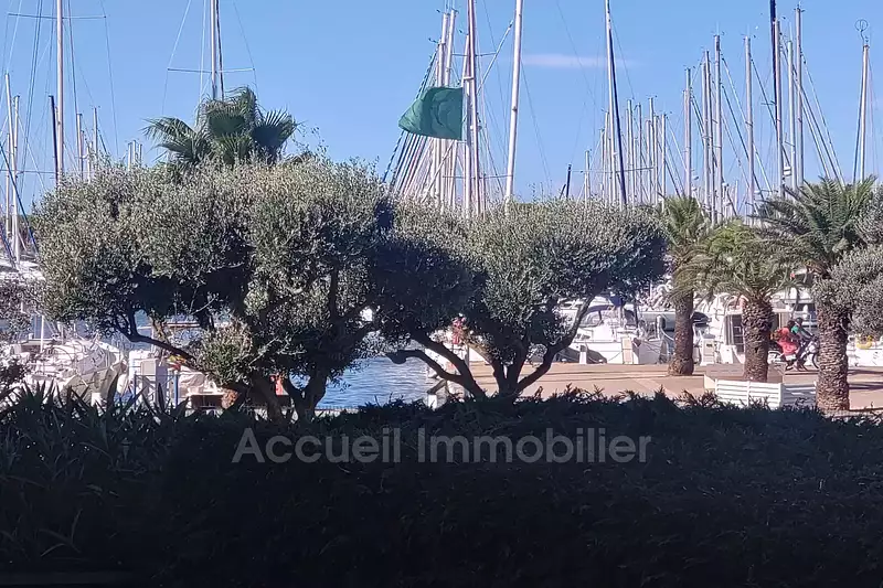 P2 cabine en rdc de 43m² Vue PORT et accès direct Terrasse 12m² et jardinet 25m² Pk commun Clim, panneau électrique neuf Store banne neuf Piscine dans une résidence sécurisée 200m de la plage Commerce à proximité