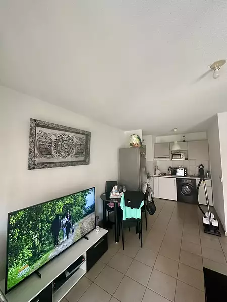 Il se compose d'une entrée avec placard de rangements, d'une cuisine meublée et équipée ouverte sur le séjour, d'une chambre, d'une salle de bain et d'un WC séparé.