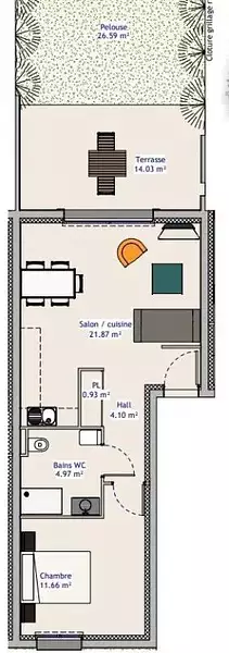 | Disponible immédiatement | 43 m² - 1 pièce - 1 chambre |