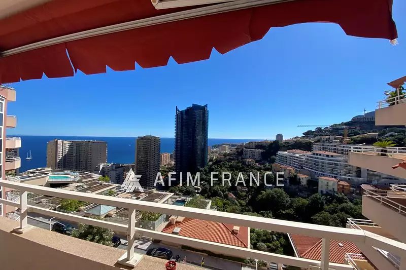 Magnifique 2 Pièces avec terrasse, vue mer et Monaco en exposition plein sud, une grande chambre, résidence de standing avec concierge piscine chauffée, hammam et sauna, garage fermé n°63.