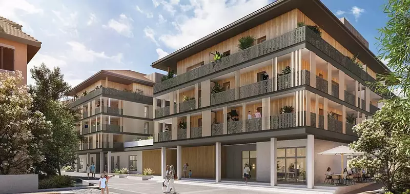 Magnifique appartement 2 pièces de 44 m², idéalement situé au coeur d'un nouveau quartier résidentiel de Bonneville, à deux pas du centre-ville, des bords de l'Arve et de toutes les commodités.
