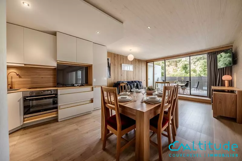 Idéalement situé à Courchevel Moriond, cet appartement traversant d'environ 45 m² séduit par sa luminosité et son emplacement privilégié. Niché au troisième étage, il bénéficie d'une double exposition — sud dans le séjour et nord dans la chambre — offrant un cadre chaleureux et agréable pour profiter pleinement de la montagne.