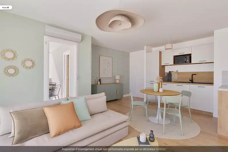 | 44,44 m² - 2 pièces - 1 chambre | 2ème étage avec ascenseur |