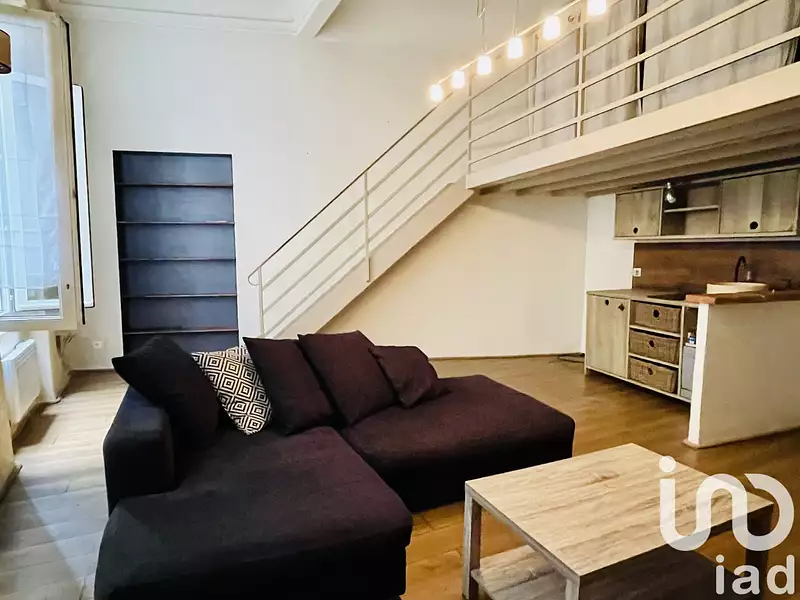 Il se compose d’une pièce de vie spacieuse avec une belle hauteur sous plafond , un coin cuisine , une salle d’eau avec double , vasque et une mezzanine faisant office de chambre .