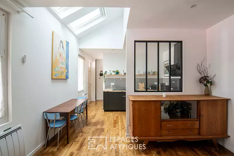 En plein coeur de Rennes, ce cocon jouit d'une situation exceptionnelle dans une allée privée, préservée de l'animation urbaine. Niché au premier étage d'une résidence bien entretenue, cet appartement traversant se distingue par son séjour lumineux orienté sud, sa chambre spacieuse et sa cuisine indépendant aménagée. Sa belle hauteur sous plafond accentue la luminosité et confère à l'ensemble une atmosphère aérée et une agréable sensation d'espace. La salle de bain moderne complète ce bien. A proximité immédiate des commerces, transports et espaces verts cet appartement saura vous séduire. CLASSE ÉNERGIE: D CLASSE CLIMAT: B Montant moyen estimé des dépenses annuelles d'énergie pour un usage standard, établi à partir des prix de l'énergie de l'année 2021: entre 880 euros ET 1230 euros (Diagnostics réalisés après le 1er Juillet 2021) Les informations sur les risques auxquels ce bien est exposé sont disponibles sur le site Géorisques : www.georisques.gouv.fr Pour plus d'information: /rennes Contact : Fatoumata Togola Beuchée- EI agent commercial - Rsac n° 521 412 072 Rennes Tèl : 0685390746 - Copropriété de 12 lots (Pas de procédure en cours). Charges annuelles : 300 euros. Fatoumata TOGOLA BEUCHEE (EI) Agent Commercial - Numéro RSAC : 521 412 072 - Rennes.