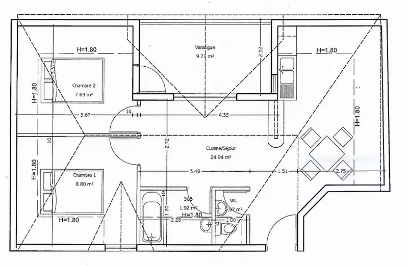 | 44,32 m² - 3 pièces - 2 chambres | 1 salle de bain |