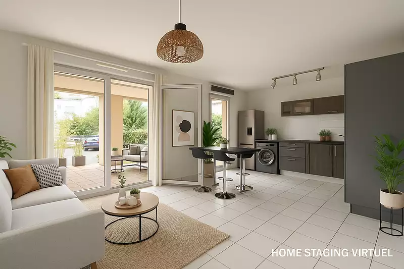 L'appartement se compose d'un grand séjour lumineux de 25 m² avec cuisine aménagée et équipée, d'une chambre confortable, d'une salle de bains et de WC séparés. Vous profiterez également d'une belle terrasse de 15 m² exposée ouest, idéale pour vos moments de détente en extérieur.