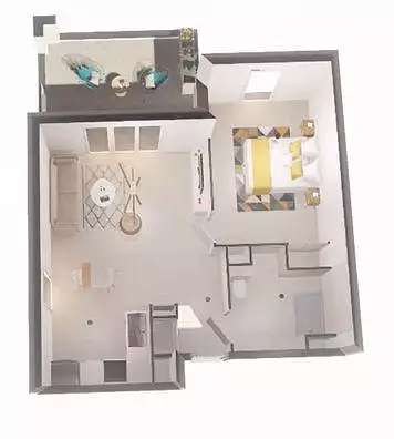 L’appartement séduit par sa circulation fluide et ses volumes équilibrés, offrant une surface habitable totale de 44,03 m² environ.
