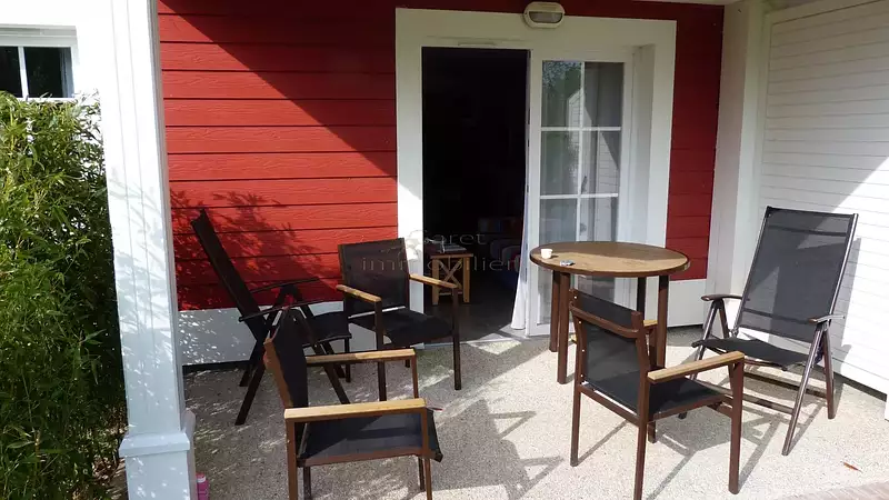 Appartement dans le domaine de Belle Dune, comprenant : une entrée, un séjour avec cuisine ouverte donnant accès sur une terrasse, une chambre et une salle de bain avec toilette.