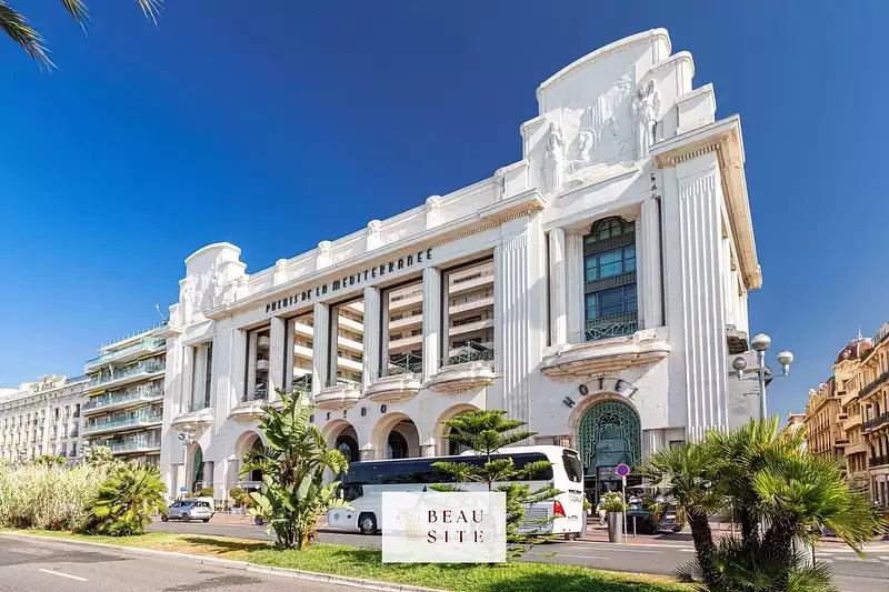 PALAIS DE LA MEDITERRANEE - avec l'accès direct sur la Promenade des anglais, au 3ème étage d'une résidence de luxe avec gardien, fermée et sécurisée, ce grand 2 pièces de 45 m² en très bon état avec terrasse de 21 m² exposée au Sud bénéficie d'une vue sur les jardins de la résidence. Au calme absolu, il est à deux pas de la mer, de tous les commerces et transports en commun.