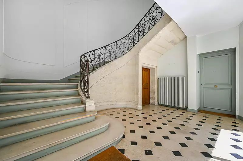 Emplacement exceptionnel au dernier étage - Magnifique immeuble 1750 avec escalier inscrit aux monuments historiques - Gardien. Découvrez ce bel appartement au calme absolu et exposé plein sud. Le bien se compose d'une entrée avec rangements, d'un escalier privatif qui donne accès à une salle à manger avec cuisine, d'une pièce de vie, d'une chambre et d'une salle d'eau avec WC. Charme de l'ancien et vue dégagée sur une belle cour arborée du Marais historique. Surface de 50.16 m2 au sol dont 38.68 m2 carrez. Coup de coeur assuré ! (3.91 % honoraires TTC à la charge de l'acquéreur.) Copropriété de 31 lots (Pas de procédure en cours). Charges annuelles : 2765 euros.