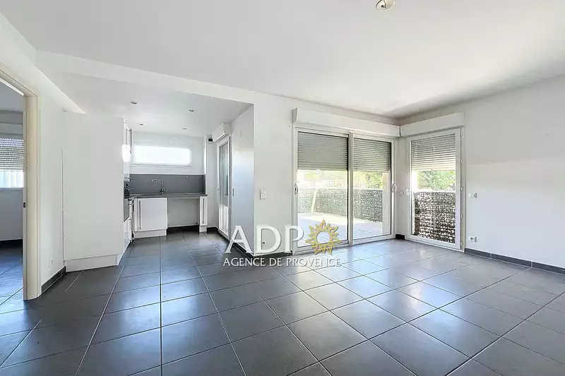 À deux pas du centre-ville, des écoles et des commerces, et situé dans une jolie copropriété récente avec piscine, en rez-de-chaussée surélevé, il se compose d'un Hall d'entrée, d'une cuisine ouverte sur le salon-séjour lumineux environ 26 m² donnant sur une vaste terrasse de presque 15 m², d'une chambre de 11 m², d'une salle de bains avec WC.