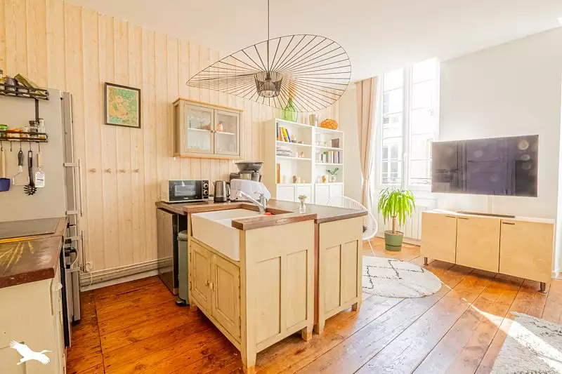 Bordeaux Saint Michel : Dans une rue calme, au premier étage d'un petit immeuble pierre, venez découvrir ce deux pièces charmant aux presatations anciennes conservées. Il se compose d'une belle entrée, d'une pièce de vie lumineuse avec cuisine ouverte, d'une chambre et d'une salle d'eau. A deux pas des commerces et des transports.