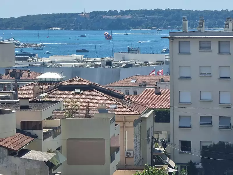 Cannes à quelques minutes à pieds du centre, au sein d'une copropriété bien entretenue, 2 pièces de 46 m2, terrasse sud, à rénover avec aperçu mer.