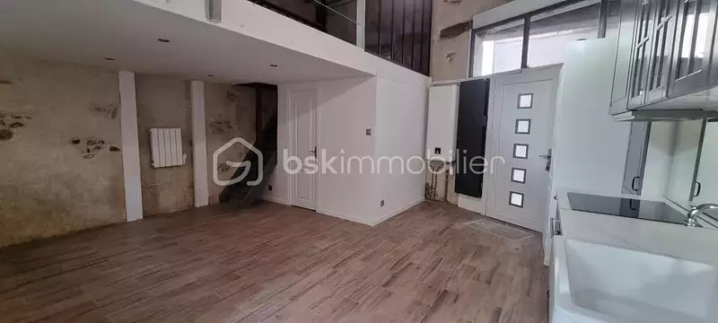 Dès l'entrée, vous découvrirez une vaste pièce principale baignée de lumière, ouverte sur une cuisine aménagée, idéale pour profiter d'un espace convivial au quotidien.