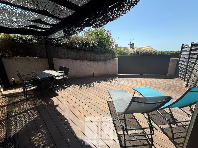Le bien profite d'une très belle terrasse en bois de 30 m2 exposée Ouest.