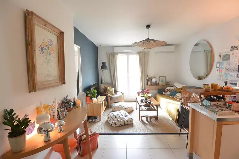 À l'intérieur, ce type 2 de 46 m² est agencé de manière fonctionnelle et climatisé, avec une cuisine ouverte sur un séjour cosy donnant accès au balcon. Une grande chambre avec dressing sur mesure, une spacieuse salle de bains et un w-c séparé complètent l'espace. L'appartement, construit en 2011, offre des prestations moderne , dans un cadre propice à la détente et au bien-être.