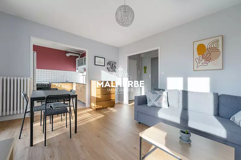 NANCY XXe CORPS : Idéalement situé sur l'Avenue du 20e Corps, au 2e étage d'une résidence calme et bien entretenue, venez découvrir ce bel appartement deux pièces en parfait état, prêt à vous accueillir sans aucun travaux. Il se compose d'une entrée avec placard, d'une pièce de vie Lumineuse avec cuisine ouverte offrant une vue verdoyante et dégagée, chambre, salle d'eau, WC séparé ainsi qu'un cellier en sous-sol. Facilité de stationnement à proximité. Un appartement fonctionnel, lumineux et bien situé, idéal pour un premier achat ou un investissement locatif. Copropriété de 14 lots (Pas de procédure en cours). Charges annuelles : 563.11 euros.