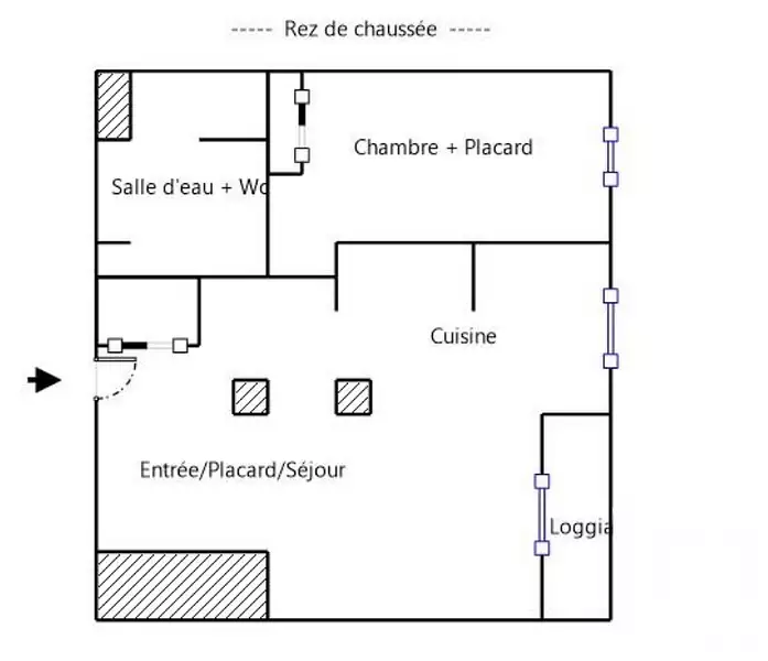 | 46 m² - 2 pièces - 1 chambre | Rez-de-chaussée |