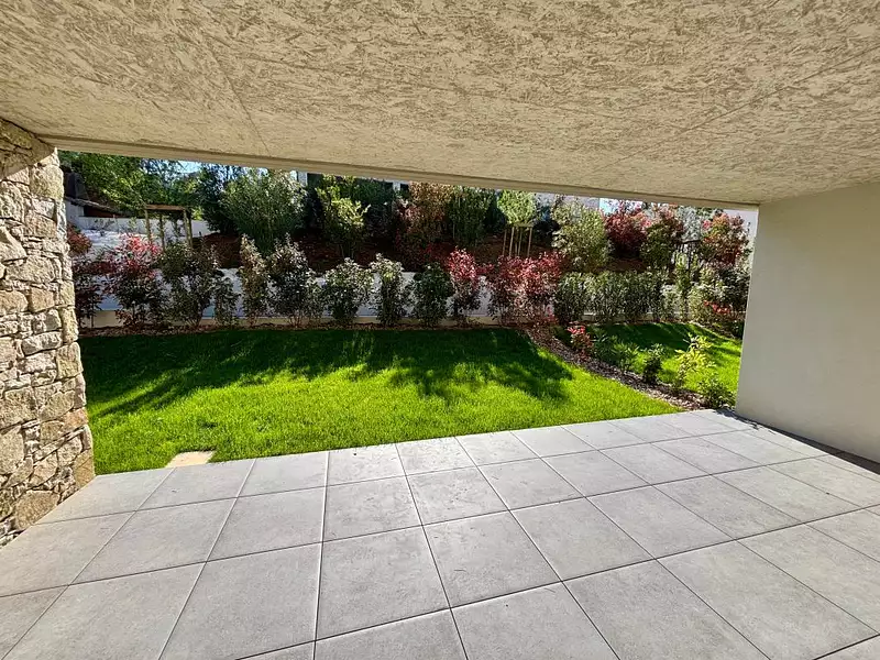 Grand appartement T2 neuf, climatisé avec cuisine aménagée, salle d'eau équipée et grande terrasse et jardin. Disponible immédiatement. Visite sur demande. Eligible PTZ (prêt à taux 0%).