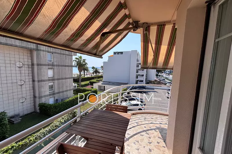 dans une petite copropriété, face à la plage de Saint-Laurent-du-Var, à deux minutes du centre commercial CAP3000 et cinq minutes de l'aéroport international de Nice, proche de tous les axes routiers et les accès bus au train,