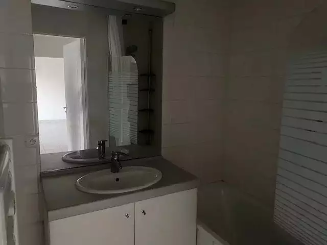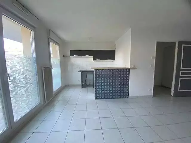 Talange: Appartement f2 en rez de chaussée. Il est composé d'une entrée, un salon accès terrasse, un coin cuisine, une salle de bains, un wc séparé, une chambre avec un accès sur terrasse. une place de parking privative. chauffage électrique.