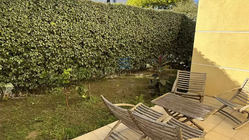 L’appartement bénéficie également d’un charmant jardin privatif, là résidence dispose d'une piscine commune. De plus, un box fermé ainsi qu’une place de stationnement extérieure viennent compléter ce bien.