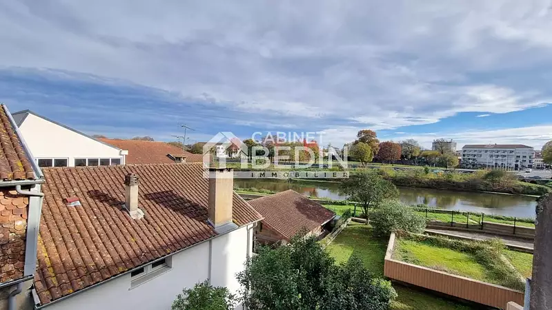DAX. A deux pas du centre ville de Dax, proche de toutes les commodités appartement de deux pièces à rénover. Il se compose d'une entrée, un séjour lumineux donnant sur une terrasse de 29m2 environ avec vue sur l'Adour, une chambre , une salle d'eau, une cuisine et une place de parking vient compléter ce bien.