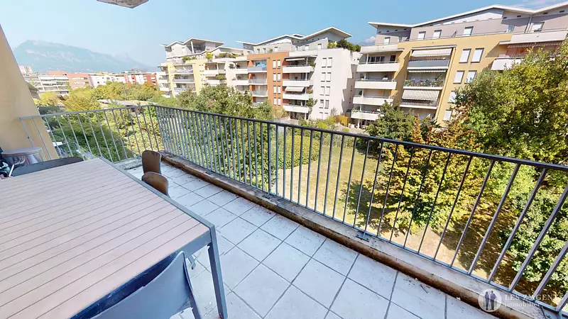 En exclusivité ! T2 de 47m2 avec une terrasse de 14m2 dans une copropriété de 2005. Situé sur le nouveau centre d'Echirolles, l'appartement est dans une copropriété bien entretenue avec parc privatif . Il se compose d'un séjour lumineux avec une terrasse vue parc, d'une cuisine indépendante aménagée et équipée, d'une salle d'eau et toilettes séparés. L'appartement dispose de double vitrage à isolation renforcée, volets roulants électrique et d'une climatisation réversible. Les charges sont de de 117 euros/mois incluant le chauffage et l'entretien de la copropriété. La classe énergétique est C A 5 minutes à pieds seulement du tram et de la clinique des cèdres. Commodités à deux minutes à pieds : carrefour market, boulangerie, pharmacie,...ect Possibilité d'acquérir le garage en sus à 15 000 euros Contactez nous au plus vite pour le visiter ! Copropriété de 212 lots - dont 128 lots habitation. (Pas de procédure en cours). Charges annuelles : 1400 euros.