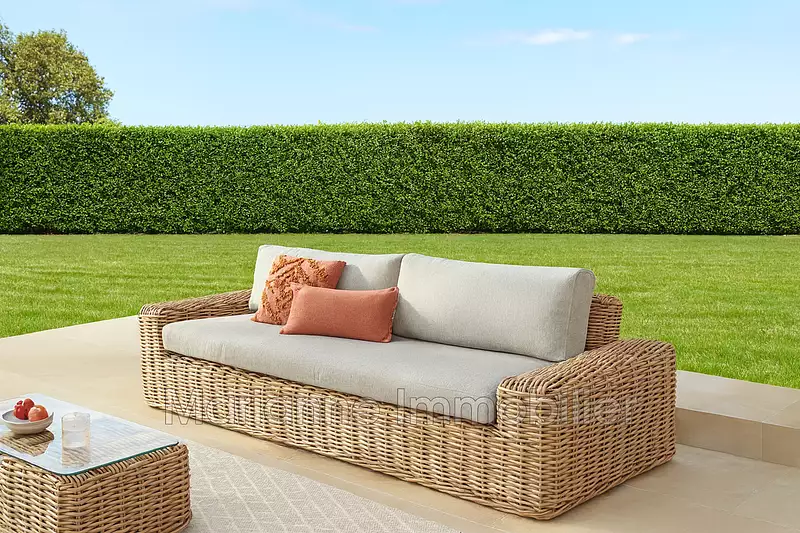 Grande baie vitrée ouvrant sur la terrasse, maximisant la lumière naturelle.