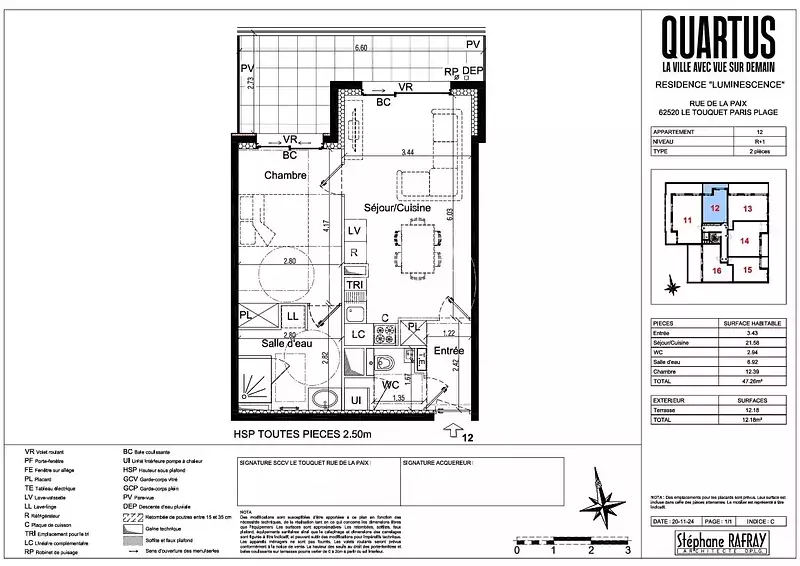 T2 DE 47,26M² AVEC TERRASSE DE 12,18M² ET EMPLACEMENT DE PARKING EN SOUS-SOL