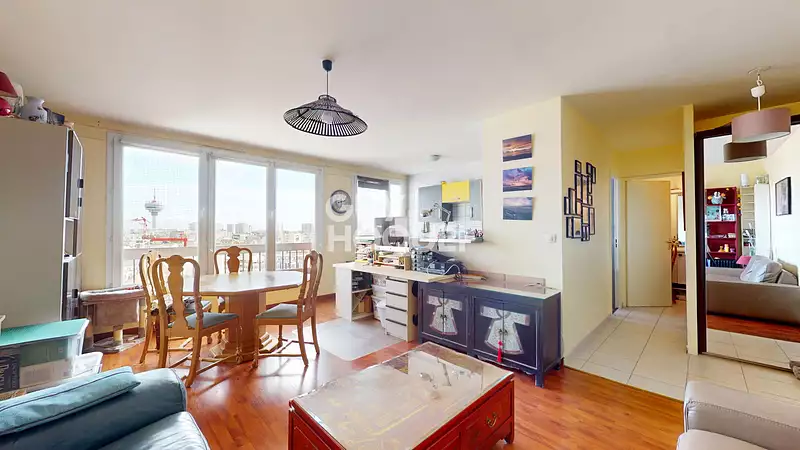 Situé à seulement 5 minutes à pied du métro Mairie des Lilas, au coeur d'un quartier vivant avec commerces et commodités immédiates, cet appartement de 47 m² en étage élevé avec ascenseur séduit par sa luminosité exceptionnelle et sa vue dégagée sans vis-à-vis. Il se compose d'une entrée avec placard, d'un séjour lumineux avec cuisine ouverte aménagée, d'un dégagement menant à une chambre confortable, d'un WC indépendant et d'une spacieuse salle d'eau avec espace buanderie possible. Un cellier ainsi qu'un box en sous-sol complètent ce bien. Les fenêtres sont déjà en double vitrage et le ravalement a été voté, à la charge du vendeur. Les travaux débuteront prochainement. Le chauffage est collectif et l'eau chaude assurée par un ballon d'eau chaude. Les atouts : une surface généreuse pour un deux-pièces, une adresse recherchée, un appartement baigné de lumière et une vue dégagée. La visite virtuelle est accessible sur simple demande auprès de nos conseillers au 01 55 82 16 16. Copropriété de 252 lots - dont 108 lots habitation. (Pas de procédure en cours). Charges annuelles : 2280 euros.