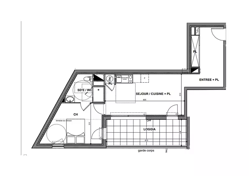 Bien agencé, ce T2 bénéficie de beaux volumes et de rangements : une entrée séparée avec placards, séjour cuisine aménagé de 20 m², une belle chambre de 12.37 m², salle d'eau avec WC et une terrasse couverte type de 12.13 m².