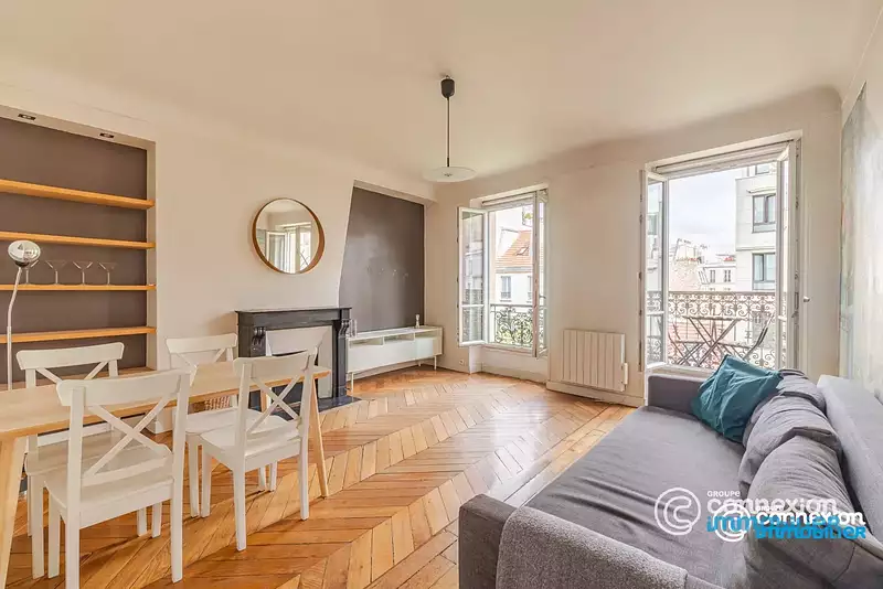 Lumineux, traversant et avec une vue dégagée. Parquet, moulures et cheminée. Proches des transports et commerces.
