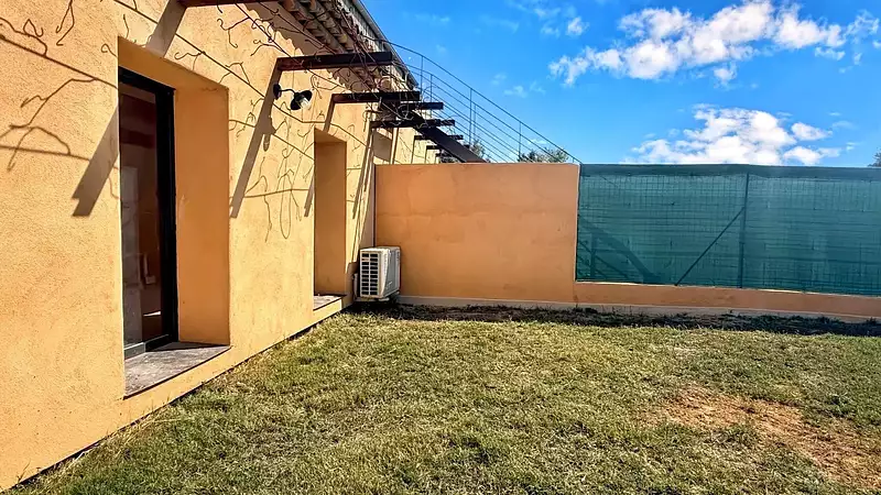 Appartement rez de jardin découvrez cet appartement moderne de type 3 en rez-de-jardin, construit en 2021 et offrant de belles prestations. d'une surface de 47 m², il se compose d'un séjour lumineux avec cuisine ouverte ,de deux chambres , d'une salle d'eau et de toilettes séparées. vous profiterez egalement d'un jardin privatif exposé plein sud, idéal pour vos moments de détente, ainsi que d'un stationnement extérieur privatif. l'appartement est en excellent état et bénéficie d'un confort optimal grâce à son système de chauffage individuel par climatisation réversible ( gainable ) et son double vitrage. situé dans un environnement calme, avec une vue dégagée sur la verdure, il constitue une belle opportunité à proximité immédiate des commodités du village. -