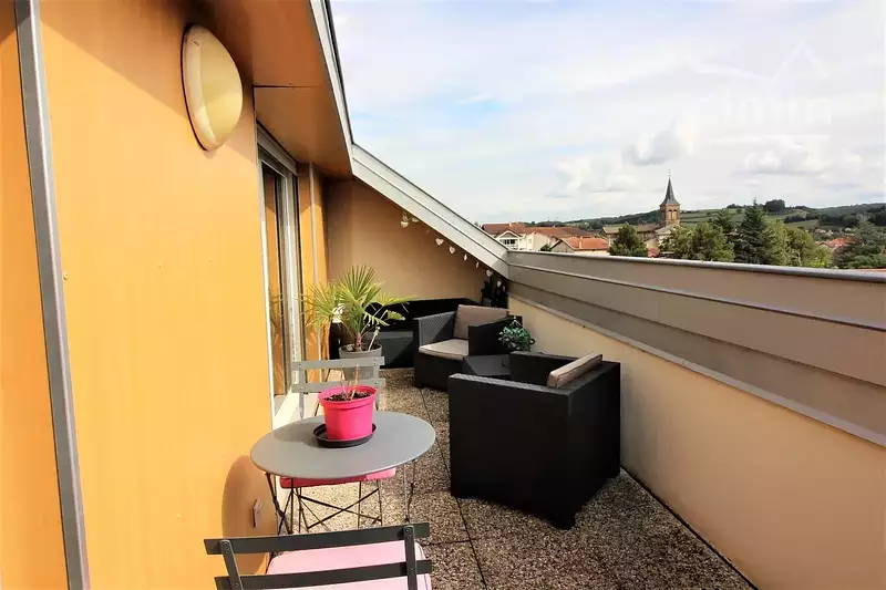 L'appartement possède une jolie terrasse de 12.87m² avec vue dégagée et orientée plein sud. Enfin, il dispose d'une place de parking numérotée avec portail électrique.