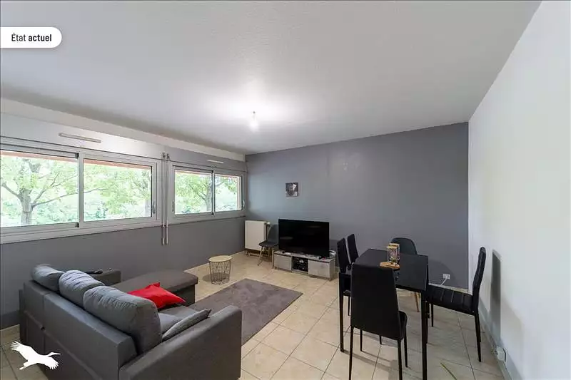 CROIX DE PIERRE - BORD DE GARONNE Dans une résidence sécurisée, proche du tramway, des écoles, des commerces, appartement de type T 2 de 47 m² avec une entrée, un salon, cuisine séparée, une chambre, salle de bains. Une place de parking privative et une cave complètent ce bien. Vendu loué 659 € la fin du bail est en Octobre 2026. Proposition d'aménagement virtuel non contractuelle en dernière photo.