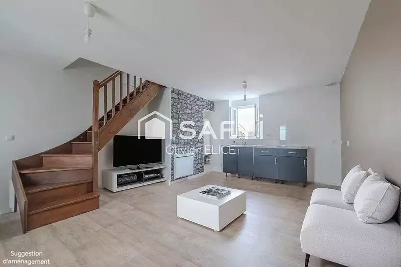 Dès l'entrée, vous arrivez dans un espace salon/salle à manger avec une cuisine ouverte. Un WC indépendant complète ce niveau.