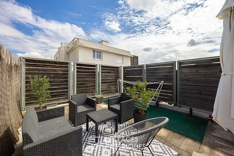 Cet appartement T2 de 47.14 m² carrez, prend place au 4ème et dernier étage avec ascenseur, d'une résidence bien entretenue de Villeurbanne. Lieux idéal pour ceux qui recherchent un bien à la fois pratique, lumineux et doté d'un extérieur spacieux, dans un environnement urbain dynamique. Ce bien bénéficie d'une belle terrasse de 26,90m², idéale pour profiter des beaux jours et recevoir dans un cadre convivial. L'intérieur de cet appartement se distingue par une ambiance moderne et chaleureuse. Le hall d'entrée, doté d'un cagibi, offre un espace de rangement pratique. La pièce de vie, composée d'une cuisine discrètement ouverte sur un salon-salle à manger, bénéficie d'un accès direct à la terrasse, créant un espace de vie intérieur-extérieur harmonieux. La partie nuit est au calme et comprend une chambre équipée d'un dressing mural, idéale pour optimiser l'espace et se voit dotée d'une salle de bains avec aménagement d'un coin buanderie et une armoire de rangement intégrée. La conception de cet appartement privilégie la luminosité et la convivialité, tout en offrant des prestations de qualité. A l'extérieur, la terrasse généreuse constitue un véritable atout, permettant de profiter pleinement du climat lyonnais. L'environnement immédiat est dynamique, avec des écoles, des commerces et des transports en commun à proximité, facilitant le quotidien. Ce bien se distingue par ses espaces optimisés, sa terrasse exceptionnelle et son emplacement stratégique. Son emplacement privilégié, à deux pas du tramway T3 et à proximité du 3ème arrondissement de Lyon, offre un accès facile aux commodités, écoles et commerces, faisant de cet appartement un choix parfait pour un premier investissement ou un projet locatif étudiant. Un garage boxé en supplément facilite le stationnement. Bien soumis au statut de la copropriété "CITY PARC".: 128 lots, dont 64 lots d'habitations, 3 bâtiments CLASSE ÉNERGIE : D - CLASSE CLIMAT : B Montant moyen estimé des dépenses annuelles d'énergie pour un usage standard, établi à partir des prix moyens des énergies indexés sur les années 2021, 2022, 2023 (abonnements compris) entre 1090 euros et 1540 euros Contact : Axel - 06 67 68 57 45 Copropriété de 128 lots - dont 64 lots habitation. (Pas de procédure en cours). Charges annuelles : 1374.83 euros. Axel Augier (EI) Agent Commercial - Numéro RSAC : 530 152 388 - Lyon.